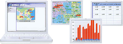 客戶通過(guò)利用互聯(lián)網(wǎng),在辦公室里就能夠準(zhǔn)確掌握機(jī)器的運(yùn)轉(zhuǎn)信息。同時(shí)利用GPS捕捉機(jī)器的工作位置。可以在25萬(wàn)分之一的地圖上顯示其現(xiàn)在位置、工作地點(diǎn)履歷、全機(jī)位置等最新情況。