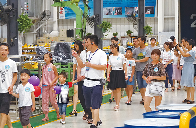 接下來員工家屬及小朋友們?cè)谑殖?個(gè)海洋吉祥物的工作人員的帶領(lǐng)下,分為“海豚隊(duì)”、“海獅隊(duì)”、“鯊魚隊(duì)”、“海龜隊(duì)”、“企鵝隊(duì)”分五批井然有序地參觀了工場。之后在食堂繪畫、畫臉譜、射箭、才藝表演,玩得不亦樂乎,并在食堂一起享用午餐。